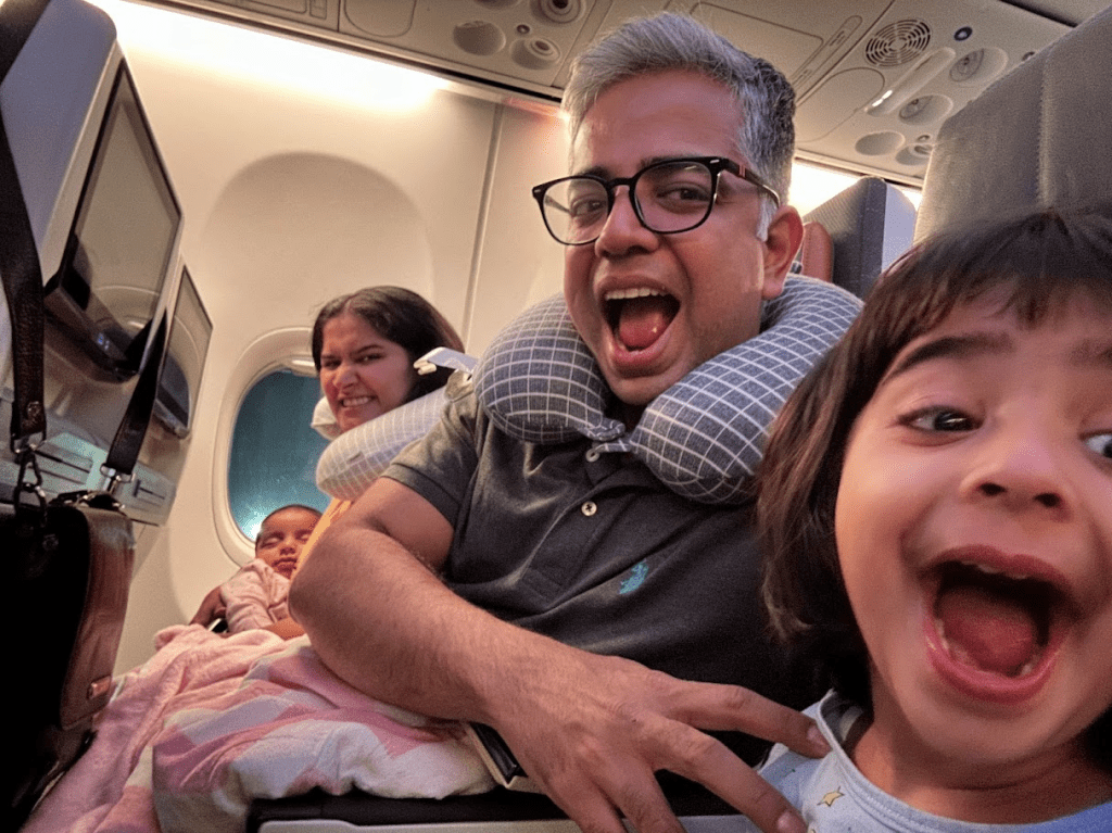 We had a stopover in Malaysia and picked a red-eye flight, because what better way to travel with kids than when they’re (hopefully) asleep, right? Thankfully, both Revaa and Vihaa snoozed most of the way. They woke up in shifts, but overall, it was a smooth, uneventful journey.